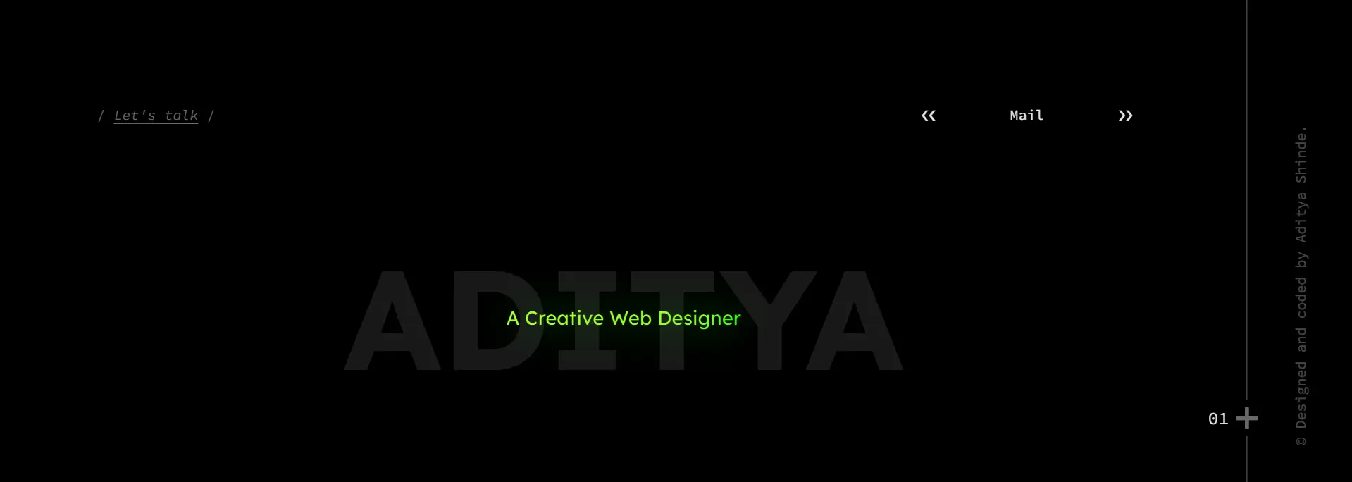 This is a personal portfolio designed to reflect my identity as a designer and developer. The aim was to create an experience that is both visually engaging and technically precise, a site that communicates skill, creativity, and attention to detail in every interaction.