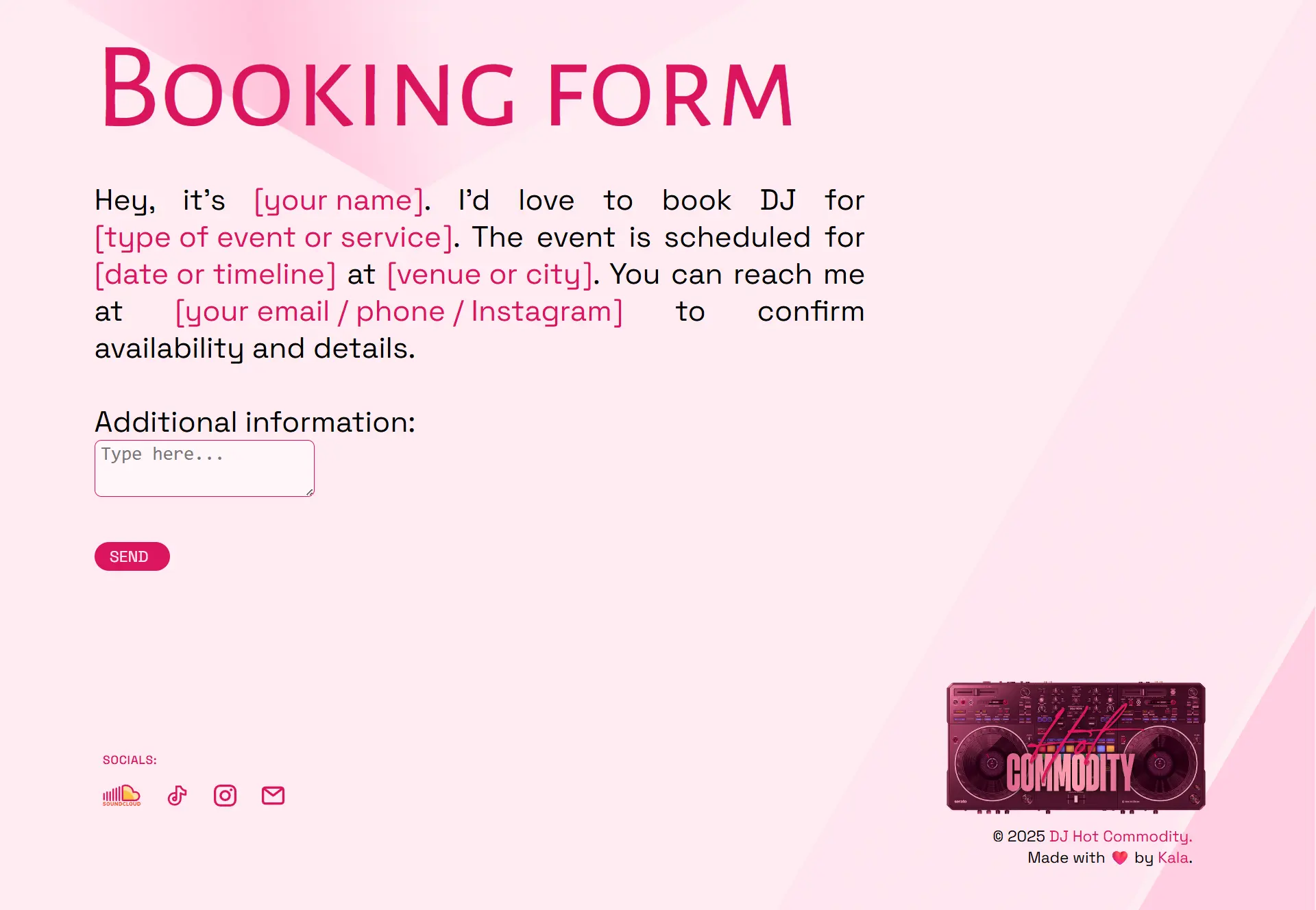 The website for DJ Hot Commodity was built to embody the artist’s vibrant personality and high-energy music style. The objective was clear, to create a digital space that feels as engaging and polished as his performances, while remaining practical and easy to manage.
